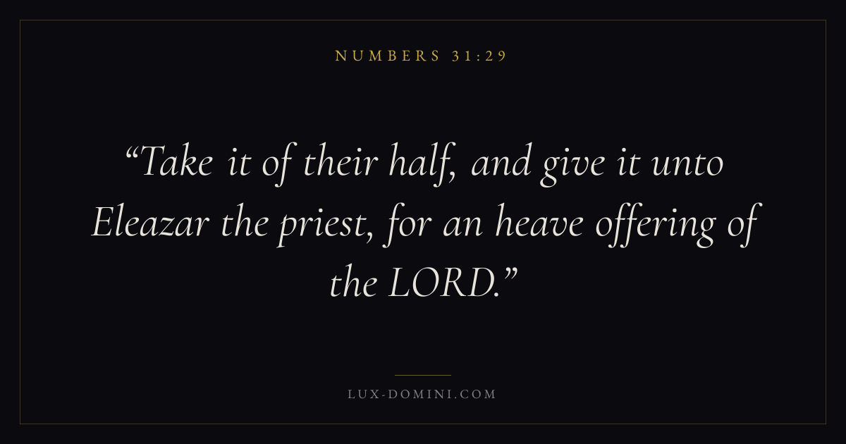 Take it of their half, and give it unto Eleazar the priest, for an heave offering of the LORD.