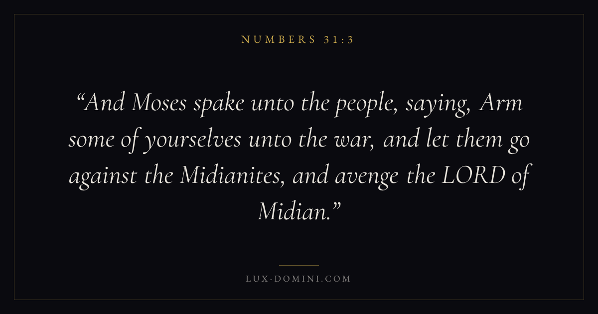 And Moses spake unto the people, saying, Arm some of yourselves unto the war, and let them go against the Midianites, and avenge the LORD of Midian.