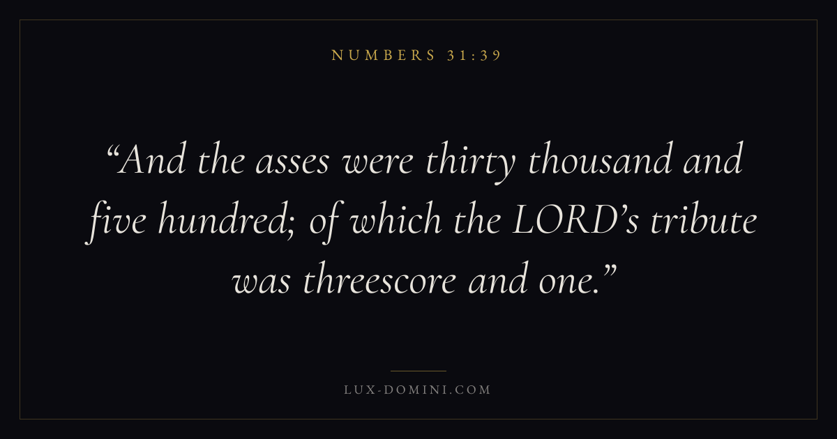 And the asses were thirty thousand and five hundred; of which the LORD’s tribute was threescore and one.