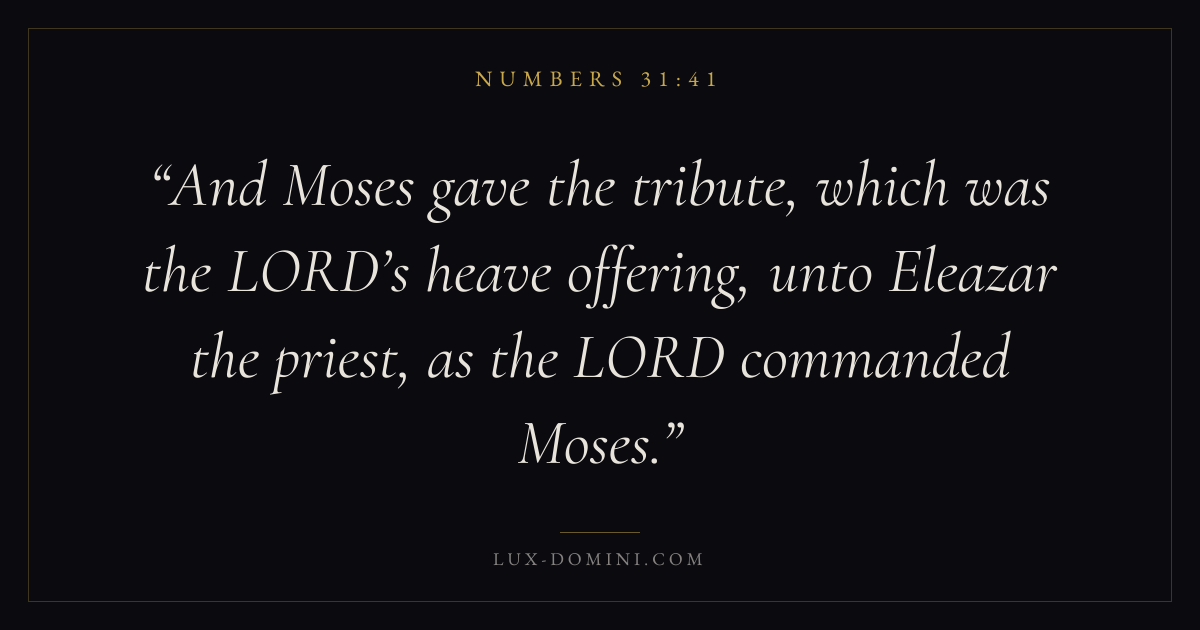 And Moses gave the tribute, which was the LORD’s heave offering, unto Eleazar the priest, as the LORD commanded Moses.