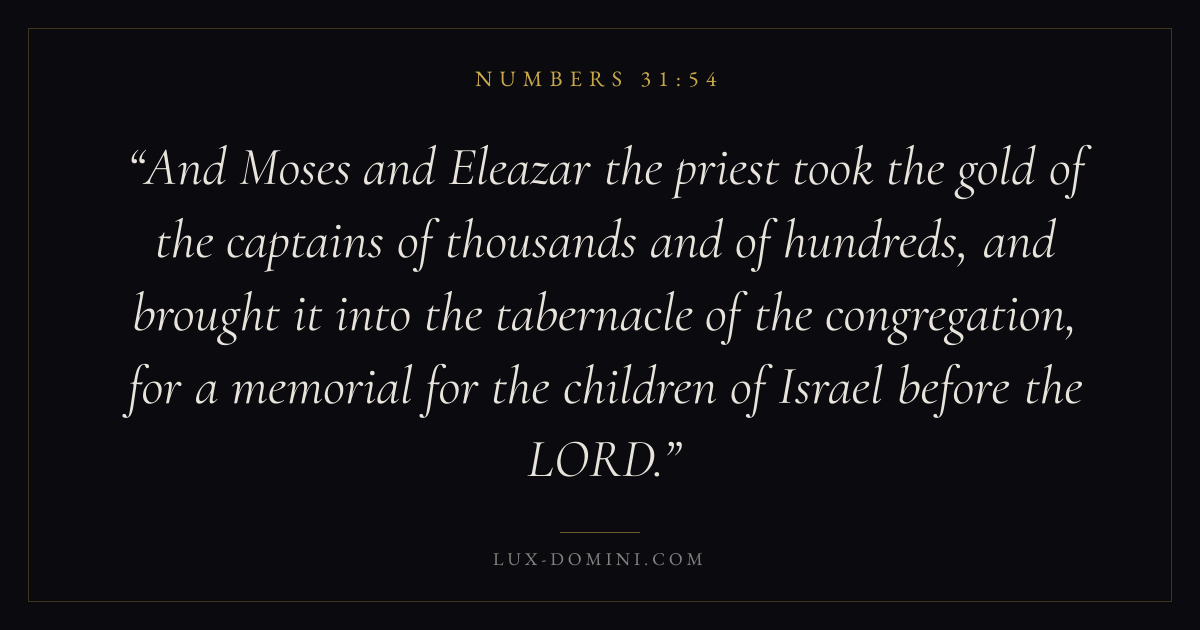 And Moses and Eleazar the priest took the gold of the captains of thousands and of hundreds, and brought it into the tabernacle of the congregation, for a memorial for the children of Israel before the LORD.