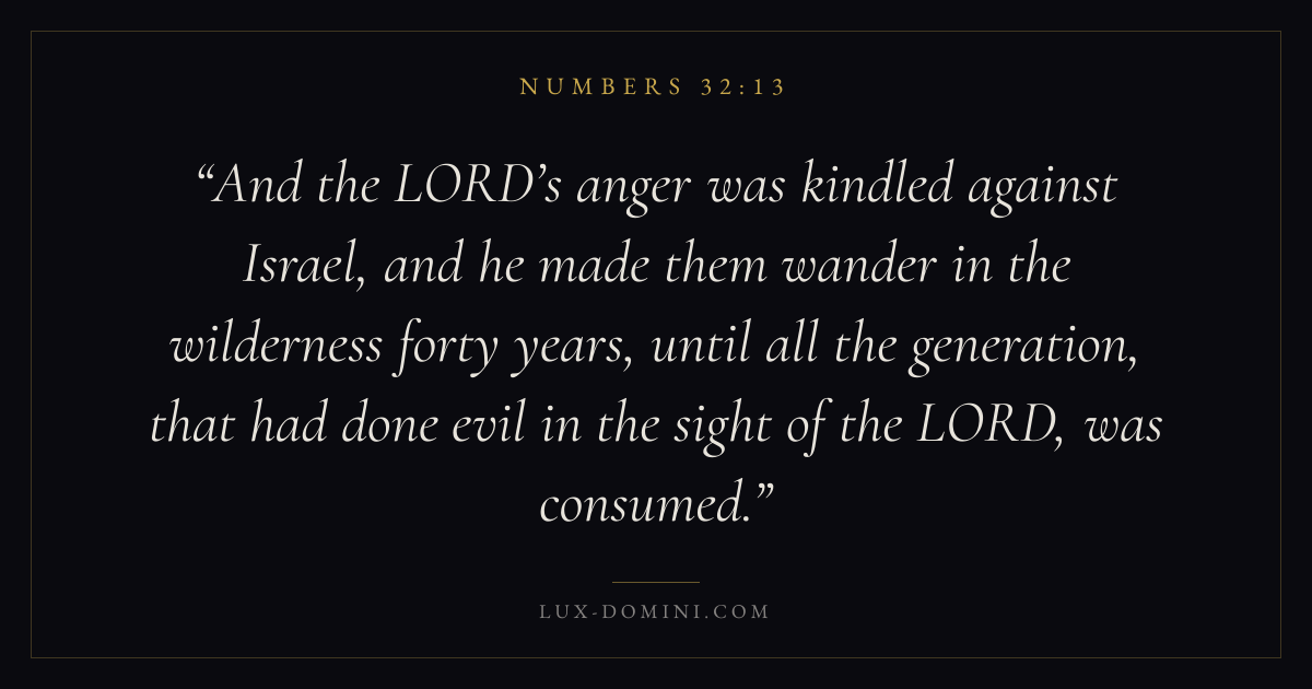 And the LORD’s anger was kindled against Israel, and he made them wander in the wilderness forty years, until all the generation, that had done evil in the sight of the LORD, was consumed.