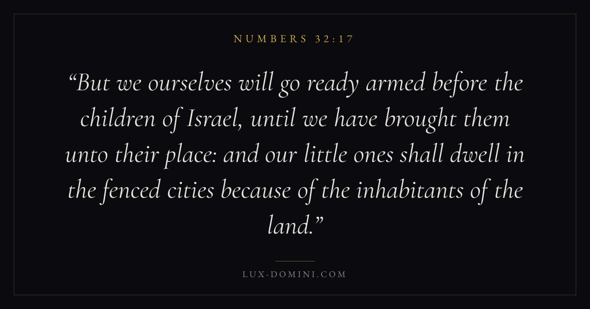 But we ourselves will go ready armed before the children of Israel, until we have brought them unto their place: and our little ones shall dwell in the fenced cities because of the inhabitants of the land.