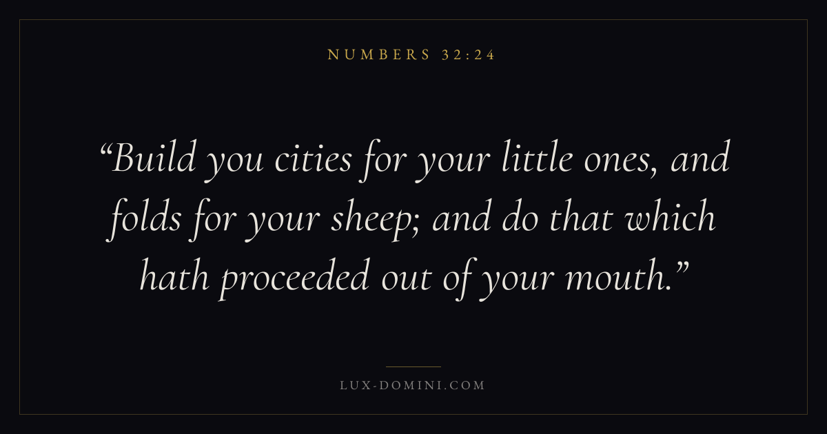 Build you cities for your little ones, and folds for your sheep; and do that which hath proceeded out of your mouth.