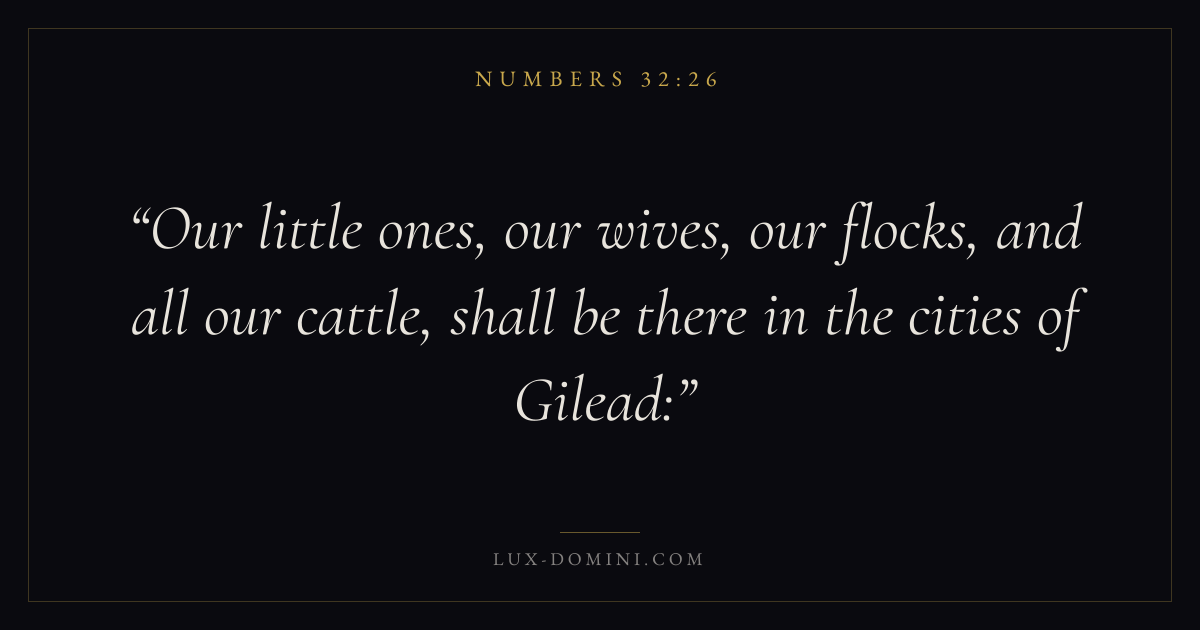 Our little ones, our wives, our flocks, and all our cattle, shall be there in the cities of Gilead: