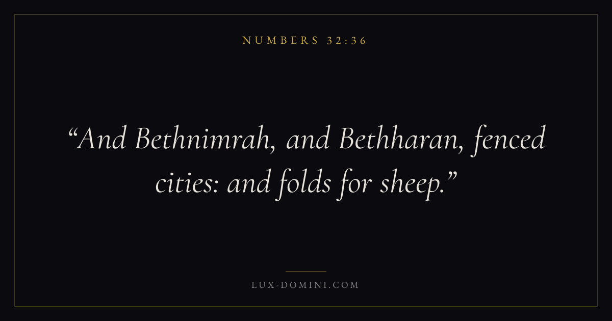 And Bethnimrah, and Bethharan, fenced cities: and folds for sheep.