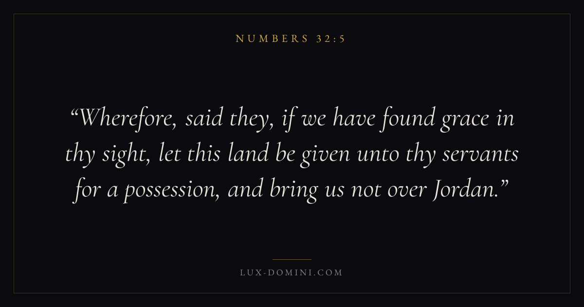 Wherefore, said they, if we have found grace in thy sight, let this land be given unto thy servants for a possession, and bring us not over Jordan.