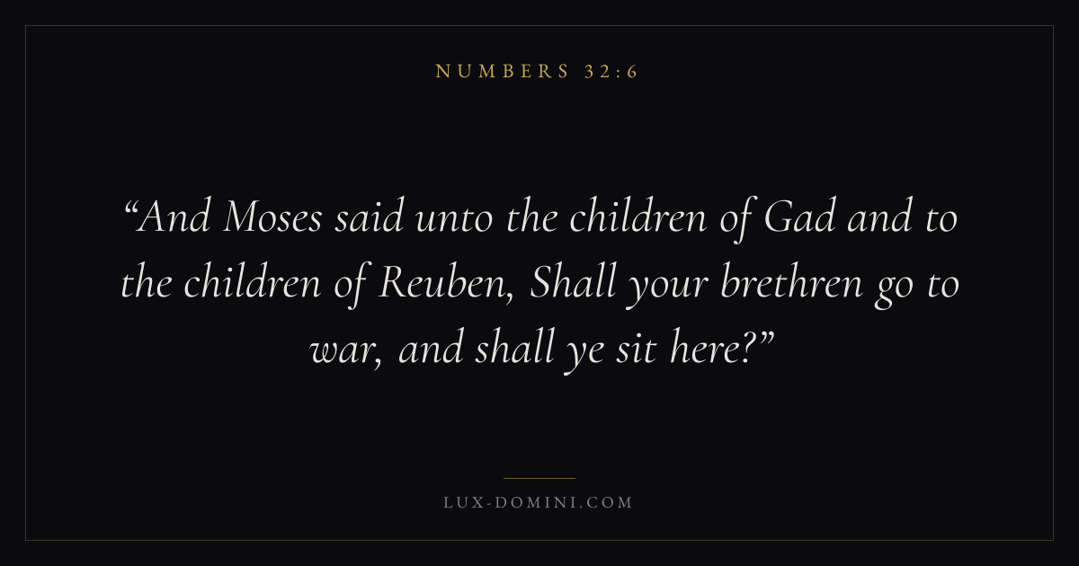 And Moses said unto the children of Gad and to the children of Reuben, Shall your brethren go to war, and shall ye sit here?