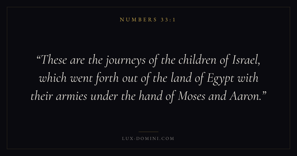These are the journeys of the children of Israel, which went forth out of the land of Egypt with their armies under the hand of Moses and Aaron.