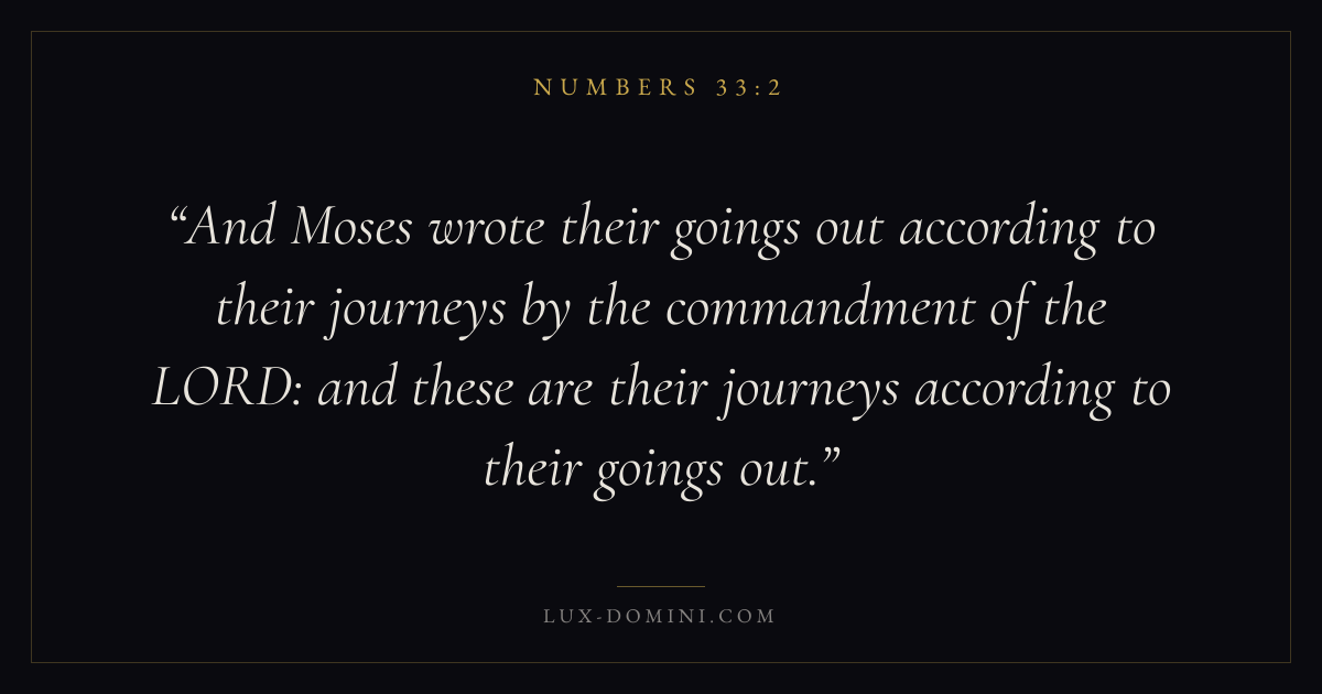 And Moses wrote their goings out according to their journeys by the commandment of the LORD: and these are their journeys according to their goings out.