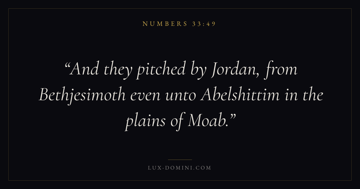 And they pitched by Jordan, from Bethjesimoth even unto Abelshittim in the plains of Moab.