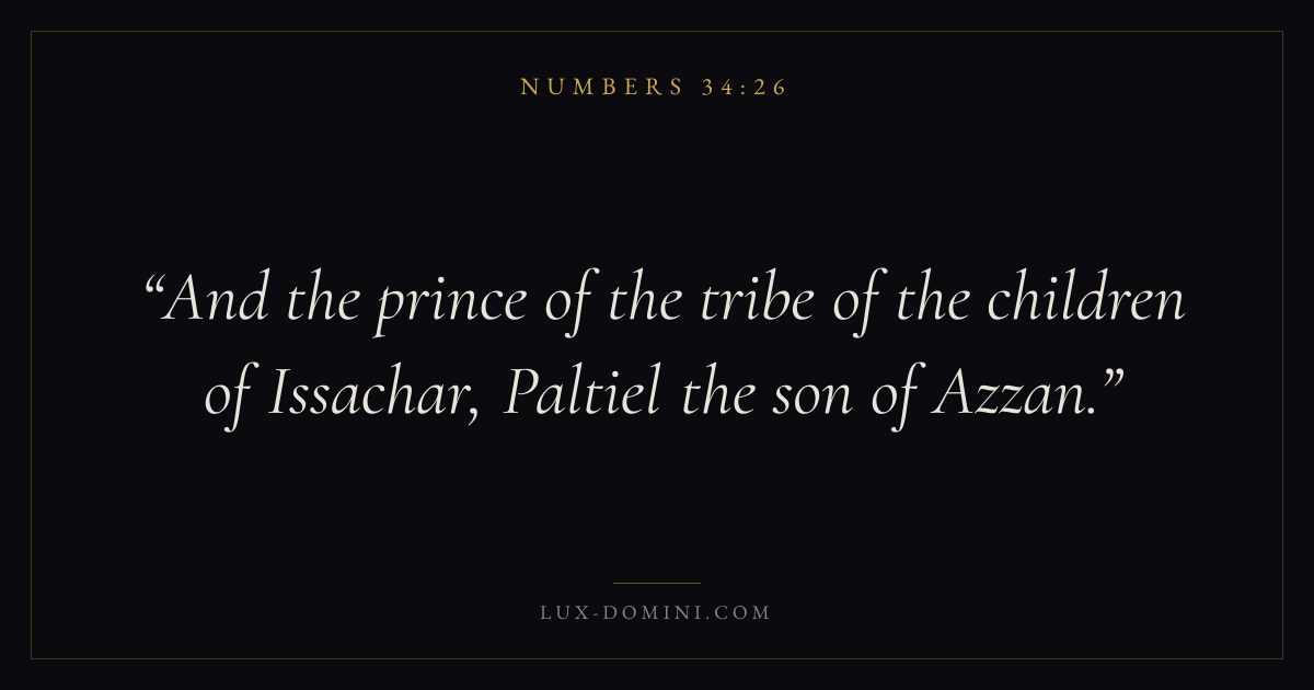 And the prince of the tribe of the children of Issachar, Paltiel the son of Azzan.