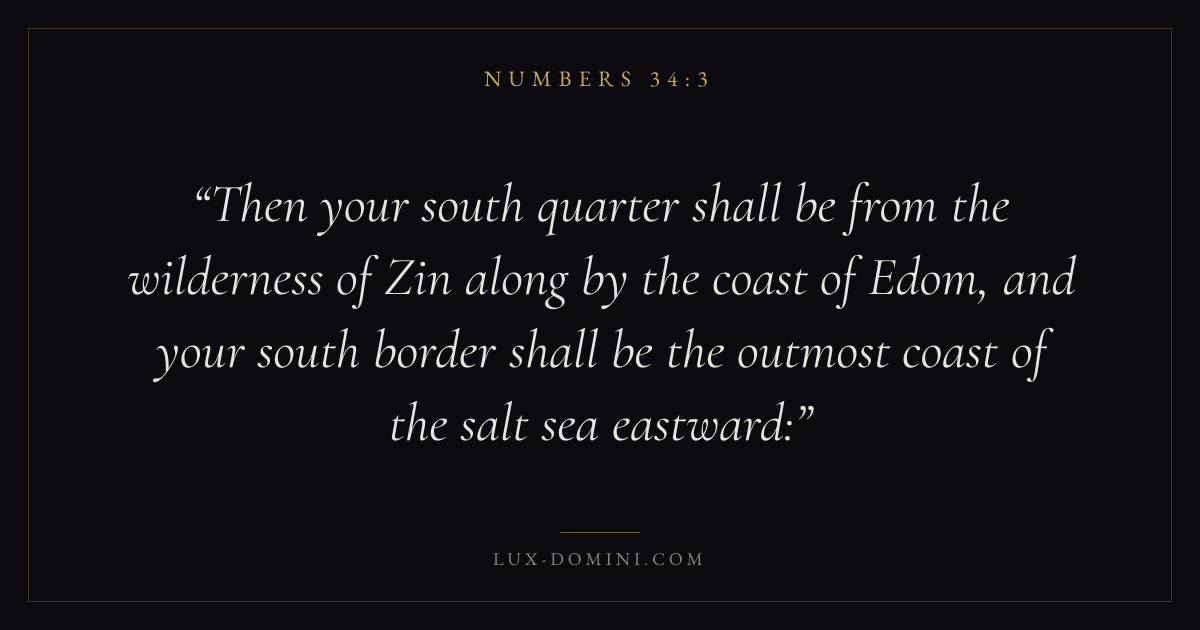 Then your south quarter shall be from the wilderness of Zin along by the coast of Edom, and your south border shall be the outmost coast of the salt sea eastward: