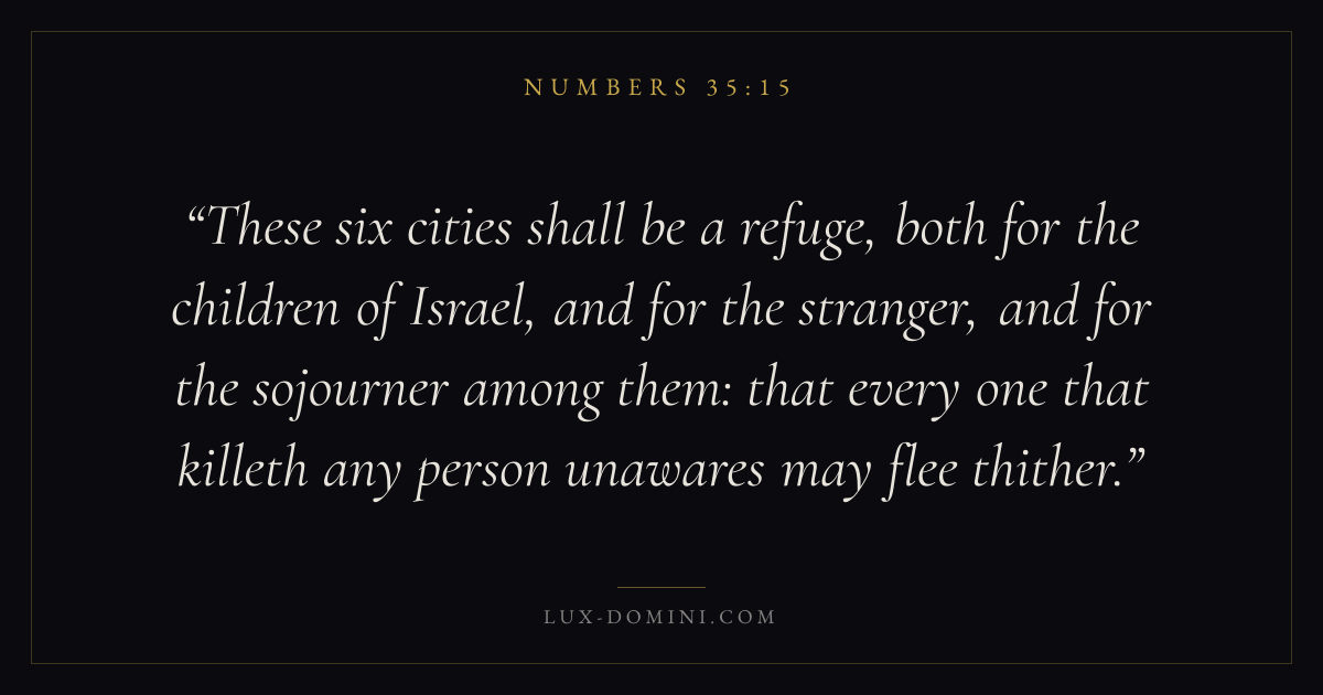 These six cities shall be a refuge, both for the children of Israel, and for the stranger, and for the sojourner among them: that every one that killeth any person unawares may flee thither.