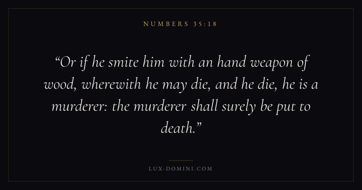 Or if he smite him with an hand weapon of wood, wherewith he may die, and he die, he is a murderer: the murderer shall surely be put to death.