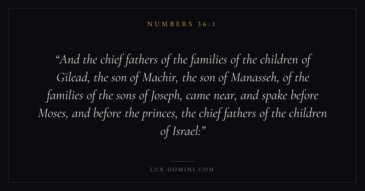 And the chief fathers of the families of the children of Gilead, the son of Machir, the son of Manasseh, of the families of the sons of Joseph, came near, and spake before Moses, and before the princes, the chief fathers of the children of Israel: