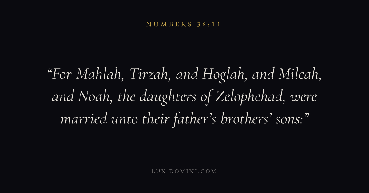 For Mahlah, Tirzah, and Hoglah, and Milcah, and Noah, the daughters of Zelophehad, were married unto their father’s brothers’ sons: