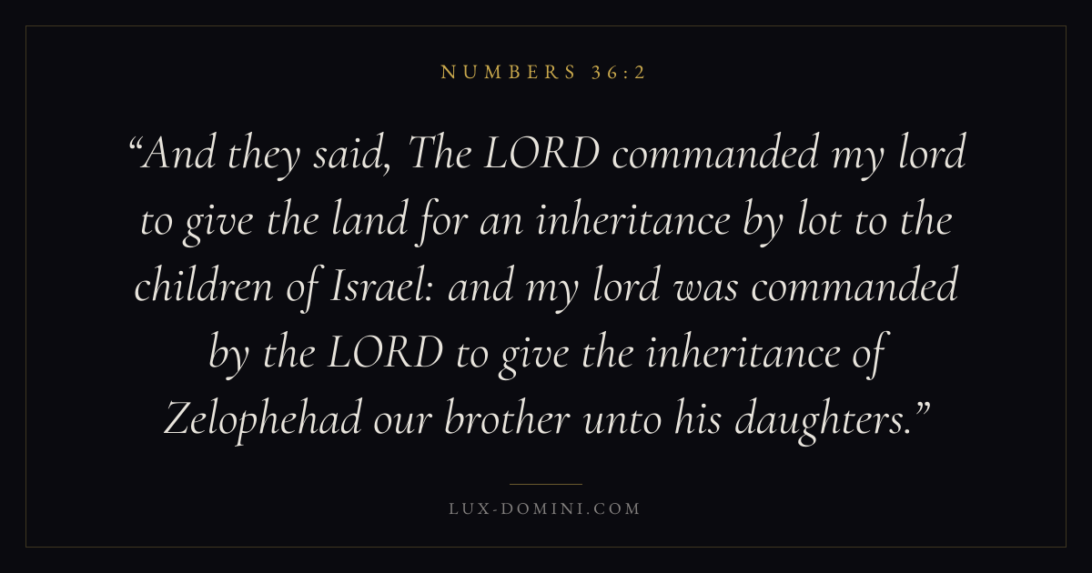 And they said, The LORD commanded my lord to give the land for an inheritance by lot to the children of Israel: and my lord was commanded by the LORD to give the inheritance of Zelophehad our brother unto his daughters.