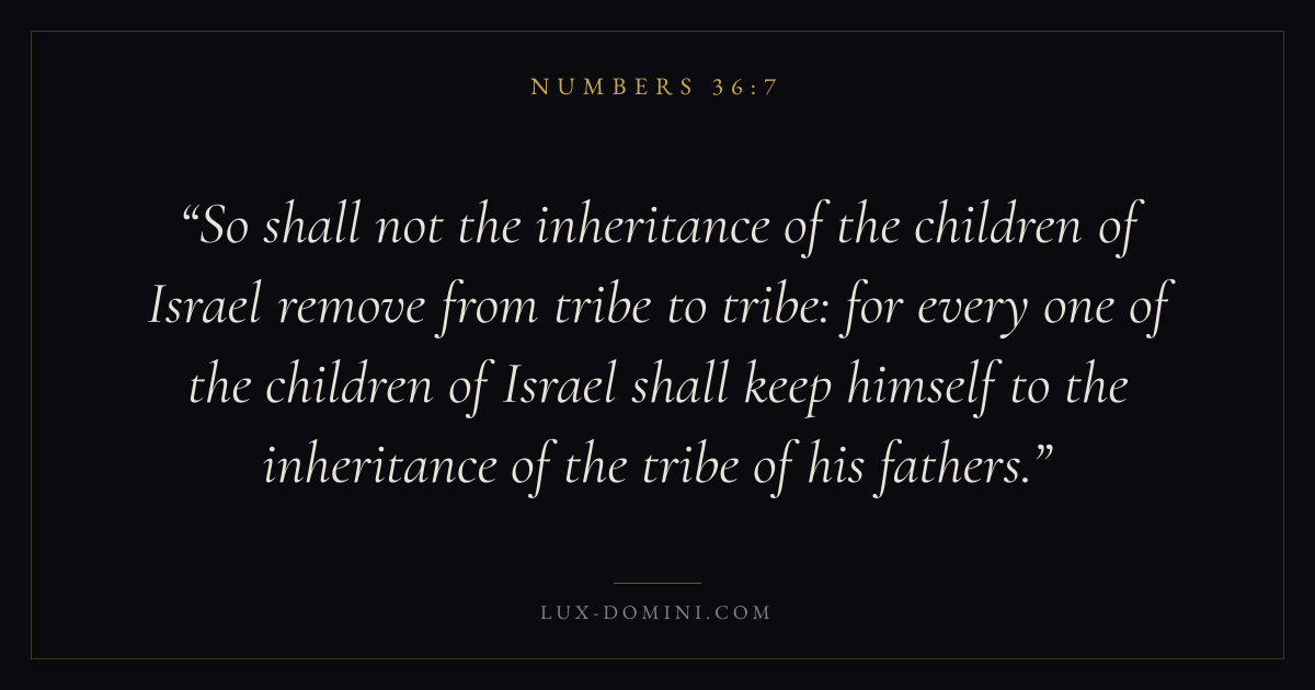 So shall not the inheritance of the children of Israel remove from tribe to tribe: for every one of the children of Israel shall keep himself to the inheritance of the tribe of his fathers.