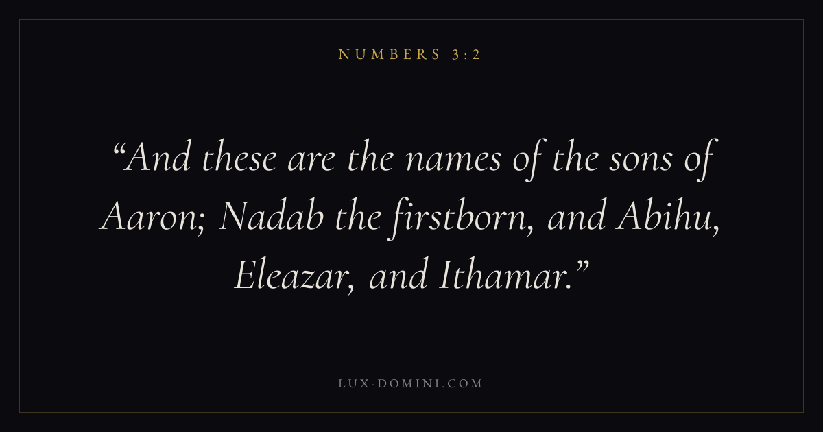 And these are the names of the sons of Aaron; Nadab the firstborn, and Abihu, Eleazar, and Ithamar.
