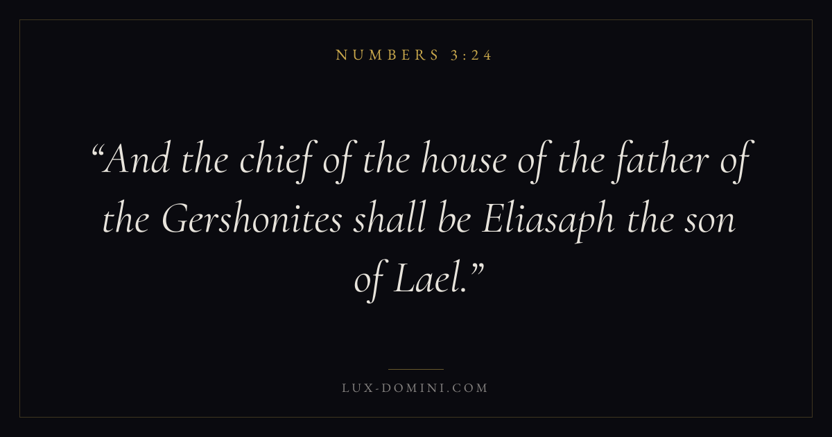 And the chief of the house of the father of the Gershonites shall be Eliasaph the son of Lael.