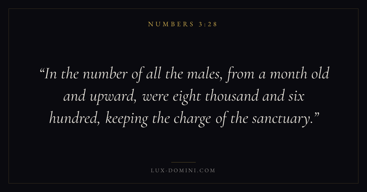In the number of all the males, from a month old and upward, were eight thousand and six hundred, keeping the charge of the sanctuary.