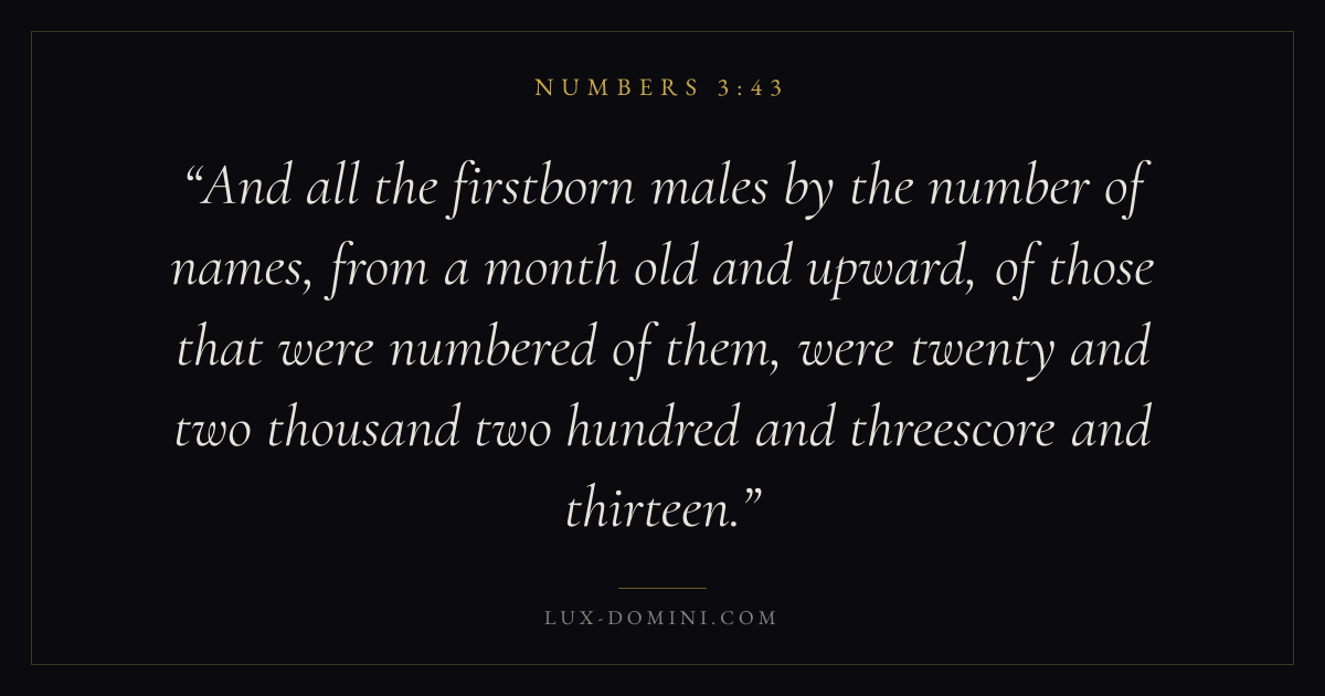 And all the firstborn males by the number of names, from a month old and upward, of those that were numbered of them, were twenty and two thousand two hundred and threescore and thirteen.