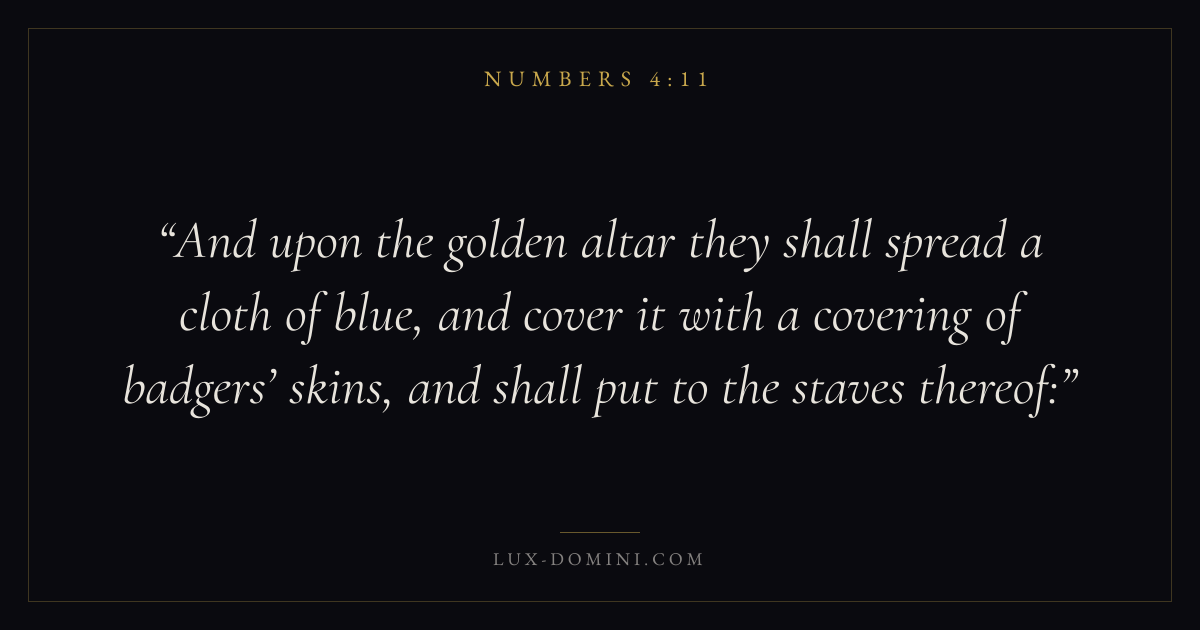 And upon the golden altar they shall spread a cloth of blue, and cover it with a covering of badgers’ skins, and shall put to the staves thereof: