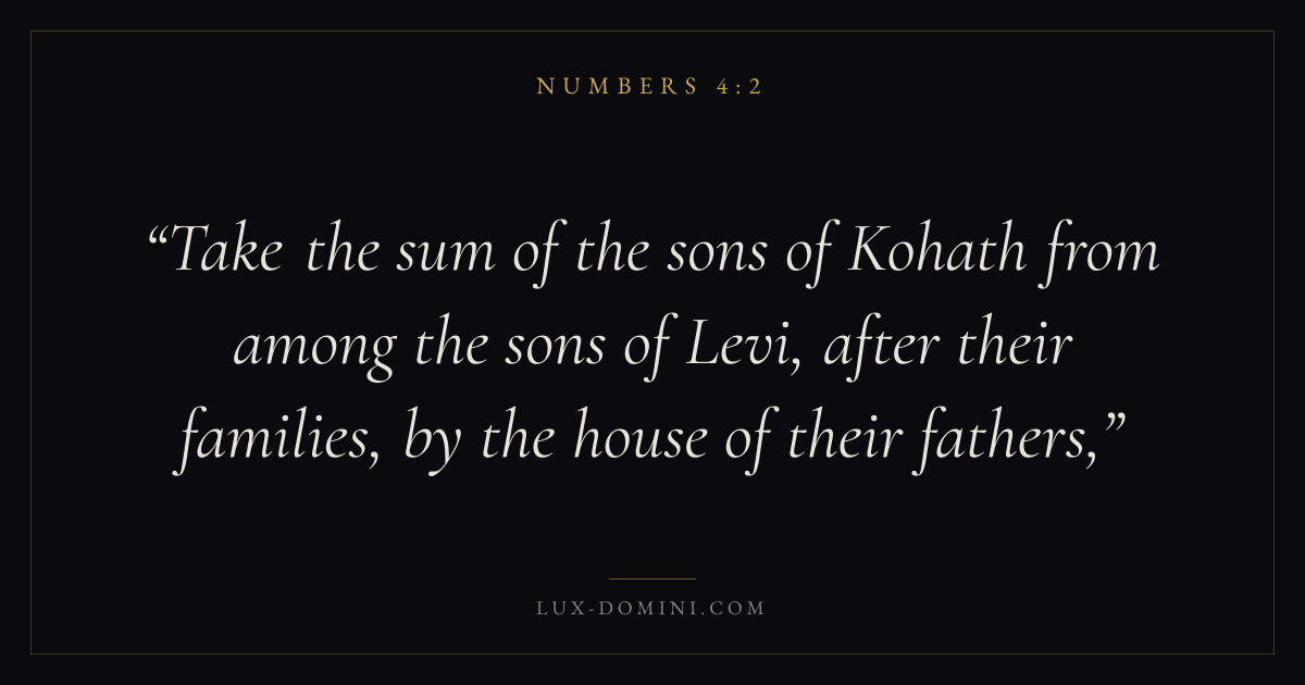 Take the sum of the sons of Kohath from among the sons of Levi, after their families, by the house of their fathers,