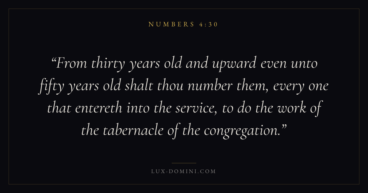 From thirty years old and upward even unto fifty years old shalt thou number them, every one that entereth into the service, to do the work of the tabernacle of the congregation.