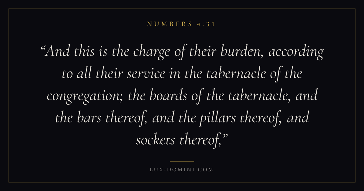And this is the charge of their burden, according to all their service in the tabernacle of the congregation; the boards of the tabernacle, and the bars thereof, and the pillars thereof, and sockets thereof,