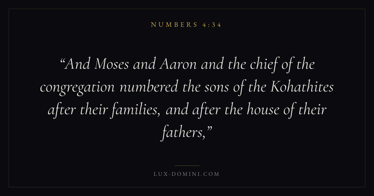 And Moses and Aaron and the chief of the congregation numbered the sons of the Kohathites after their families, and after the house of their fathers,