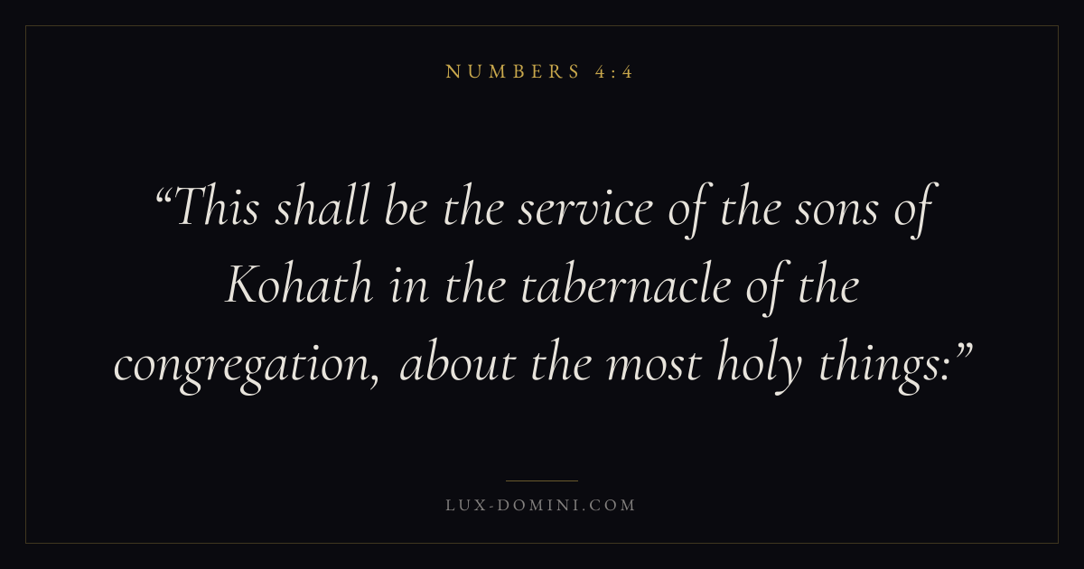 This shall be the service of the sons of Kohath in the tabernacle of the congregation, about the most holy things: