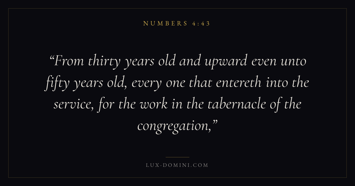 From thirty years old and upward even unto fifty years old, every one that entereth into the service, for the work in the tabernacle of the congregation,