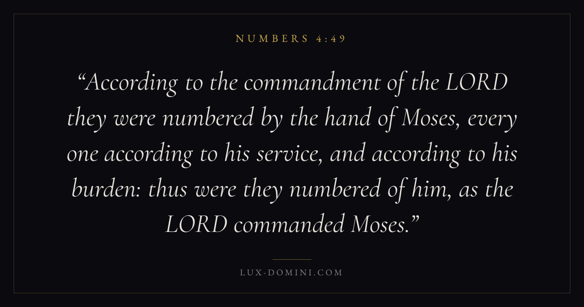According to the commandment of the LORD they were numbered by the hand of Moses, every one according to his service, and according to his burden: thus were they numbered of him, as the LORD commanded Moses.
