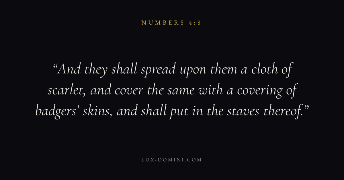 And they shall spread upon them a cloth of scarlet, and cover the same with a covering of badgers’ skins, and shall put in the staves thereof.