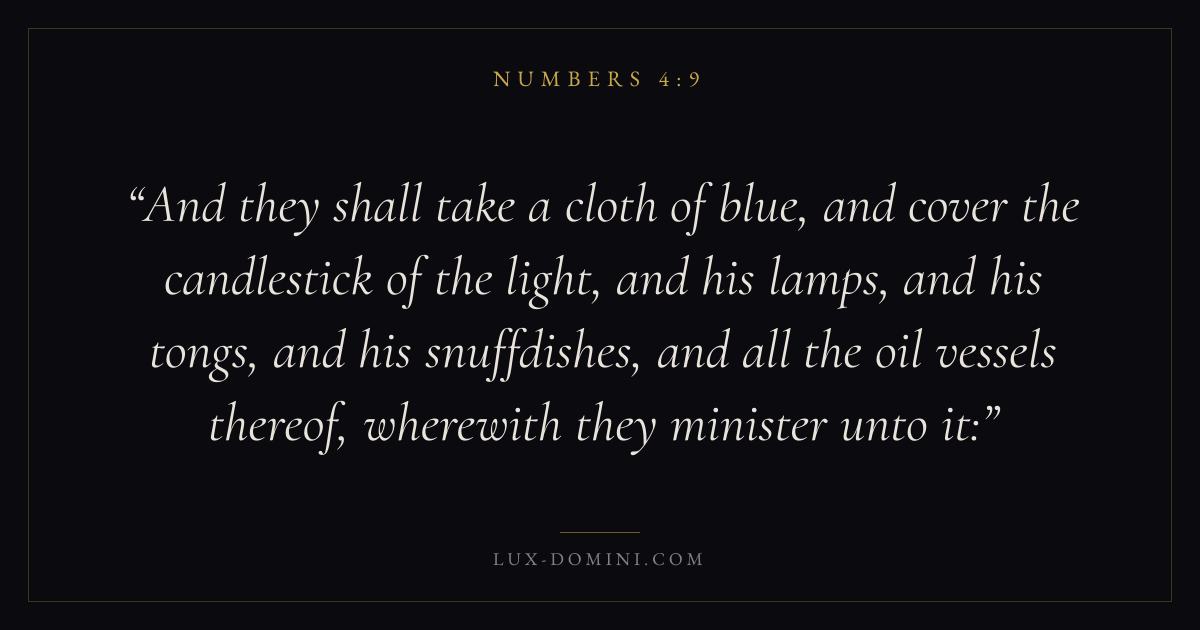 And they shall take a cloth of blue, and cover the candlestick of the light, and his lamps, and his tongs, and his snuffdishes, and all the oil vessels thereof, wherewith they minister unto it:
