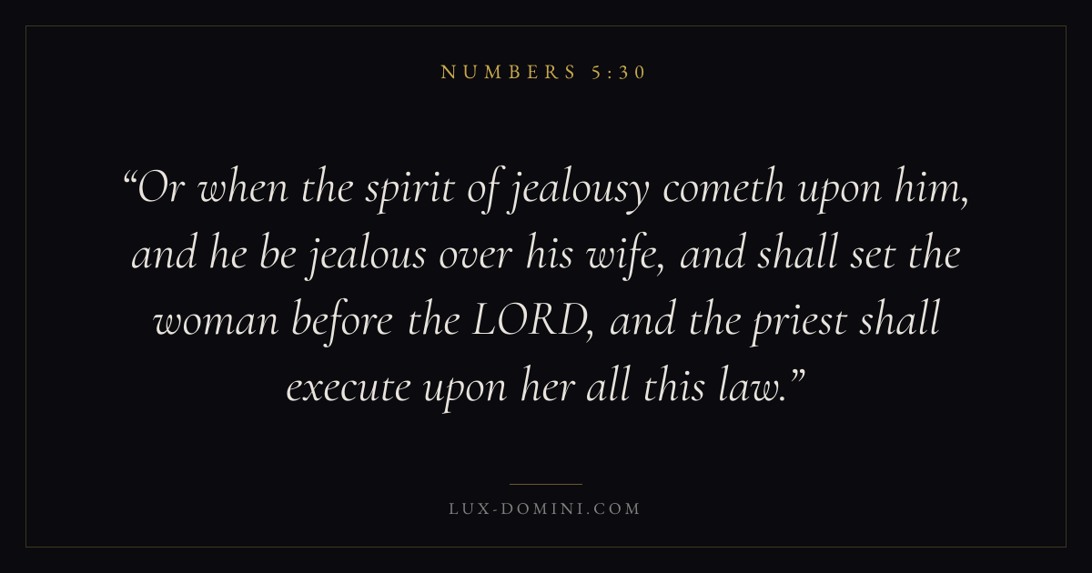 Or when the spirit of jealousy cometh upon him, and he be jealous over his wife, and shall set the woman before the LORD, and the priest shall execute upon her all this law.