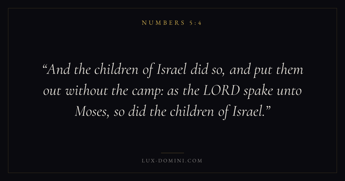 And the children of Israel did so, and put them out without the camp: as the LORD spake unto Moses, so did the children of Israel.