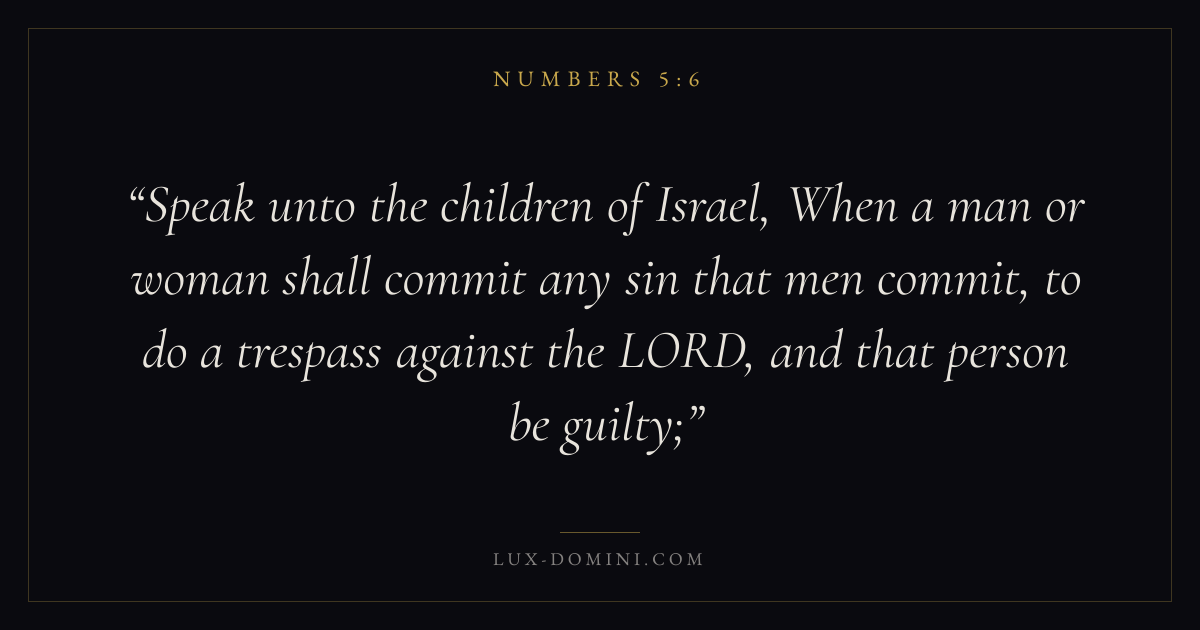 Speak unto the children of Israel, When a man or woman shall commit any sin that men commit, to do a trespass against the LORD, and that person be guilty;