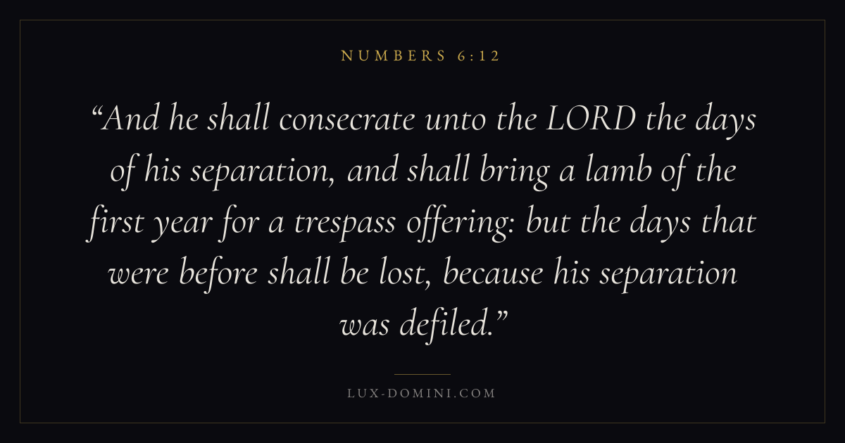 And he shall consecrate unto the LORD the days of his separation, and shall bring a lamb of the first year for a trespass offering: but the days that were before shall be lost, because his separation was defiled.