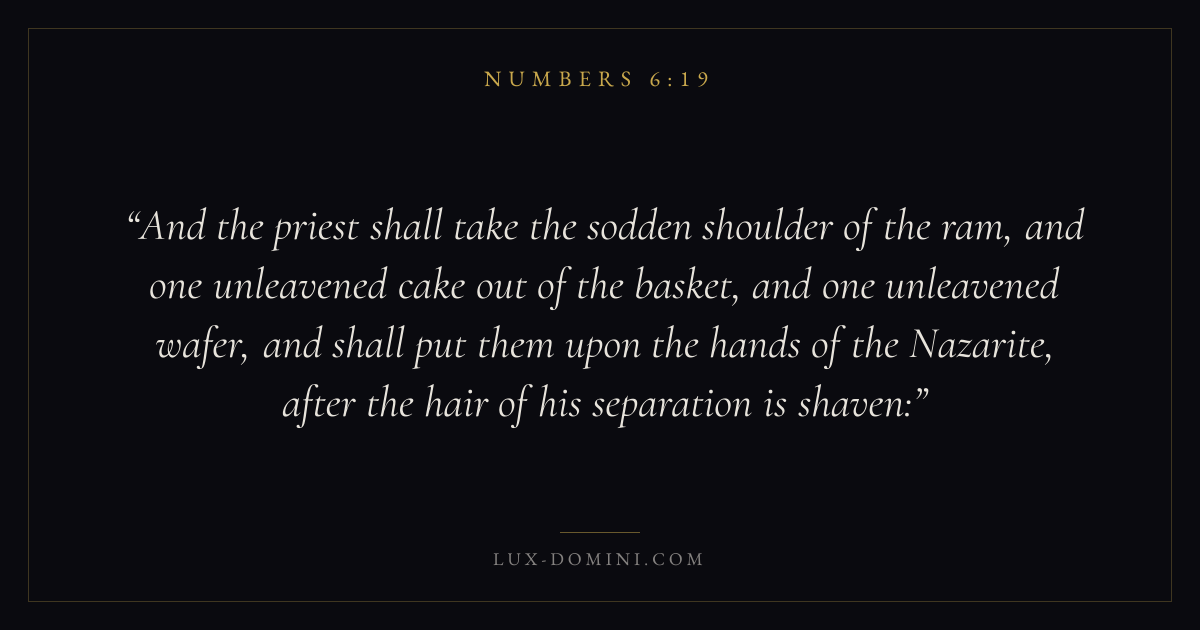 And the priest shall take the sodden shoulder of the ram, and one unleavened cake out of the basket, and one unleavened wafer, and shall put them upon the hands of the Nazarite, after the hair of his separation is shaven: