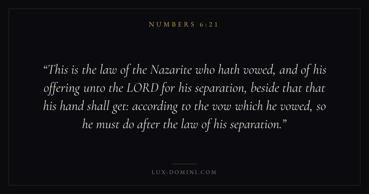This is the law of the Nazarite who hath vowed, and of his offering unto the LORD for his separation, beside that that his hand shall get: according to the vow which he vowed, so he must do after the law of his separation.