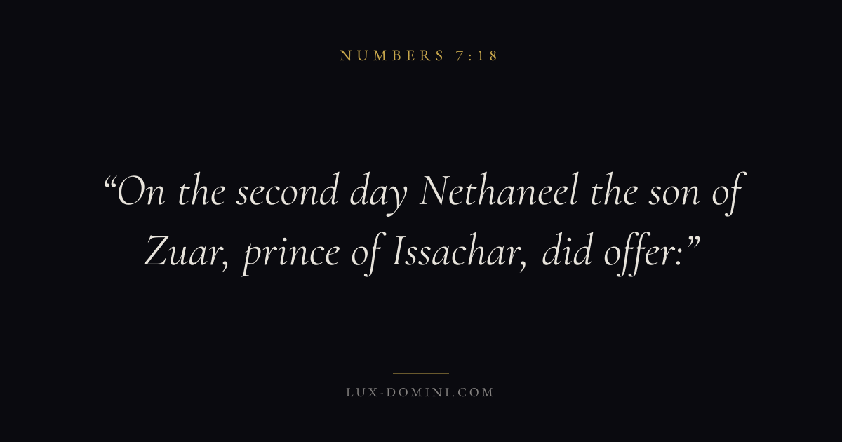On the second day Nethaneel the son of Zuar, prince of Issachar, did offer: