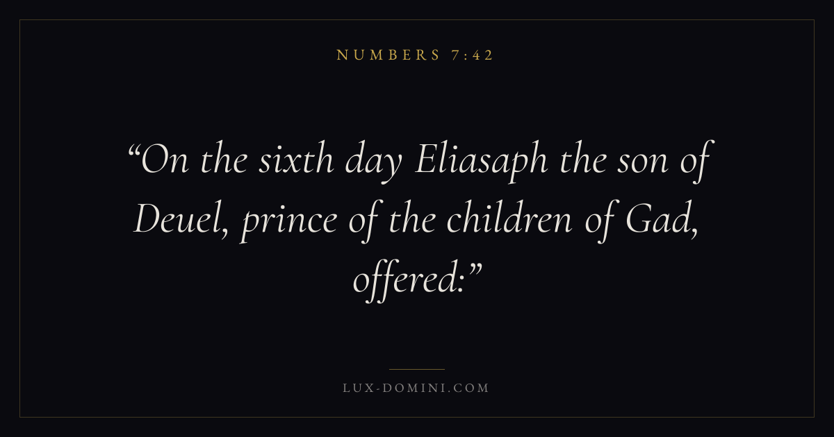 On the sixth day Eliasaph the son of Deuel, prince of the children of Gad, offered: