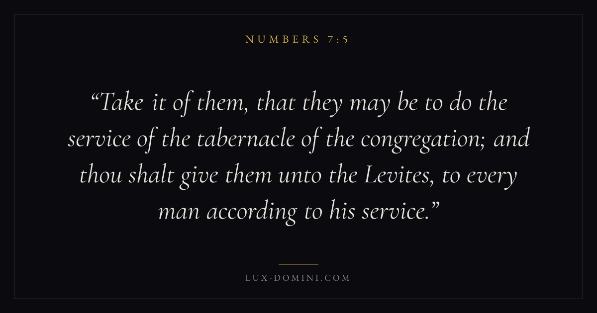 Take it of them, that they may be to do the service of the tabernacle of the congregation; and thou shalt give them unto the Levites, to every man according to his service.