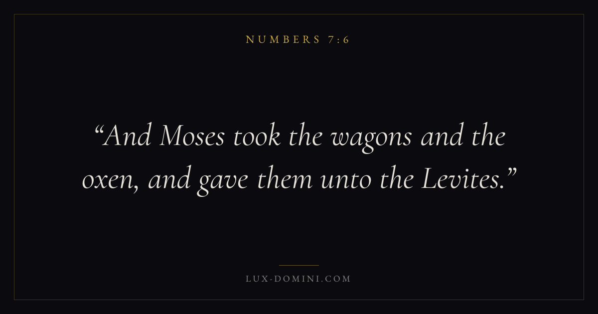 And Moses took the wagons and the oxen, and gave them unto the Levites.