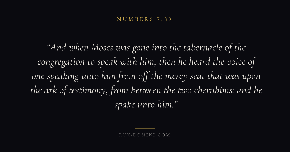 And when Moses was gone into the tabernacle of the congregation to speak with him, then he heard the voice of one speaking unto him from off the mercy seat that was upon the ark of testimony, from between the two cherubims: and he spake unto him.