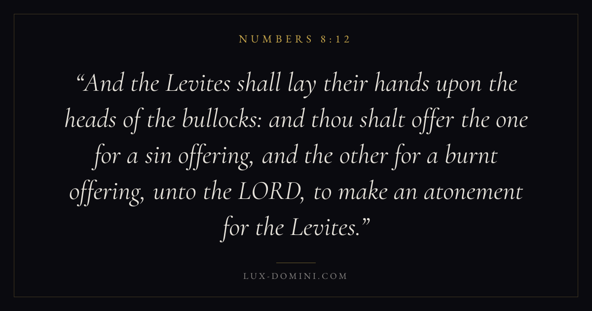 And the Levites shall lay their hands upon the heads of the bullocks: and thou shalt offer the one for a sin offering, and the other for a burnt offering, unto the LORD, to make an atonement for the Levites.