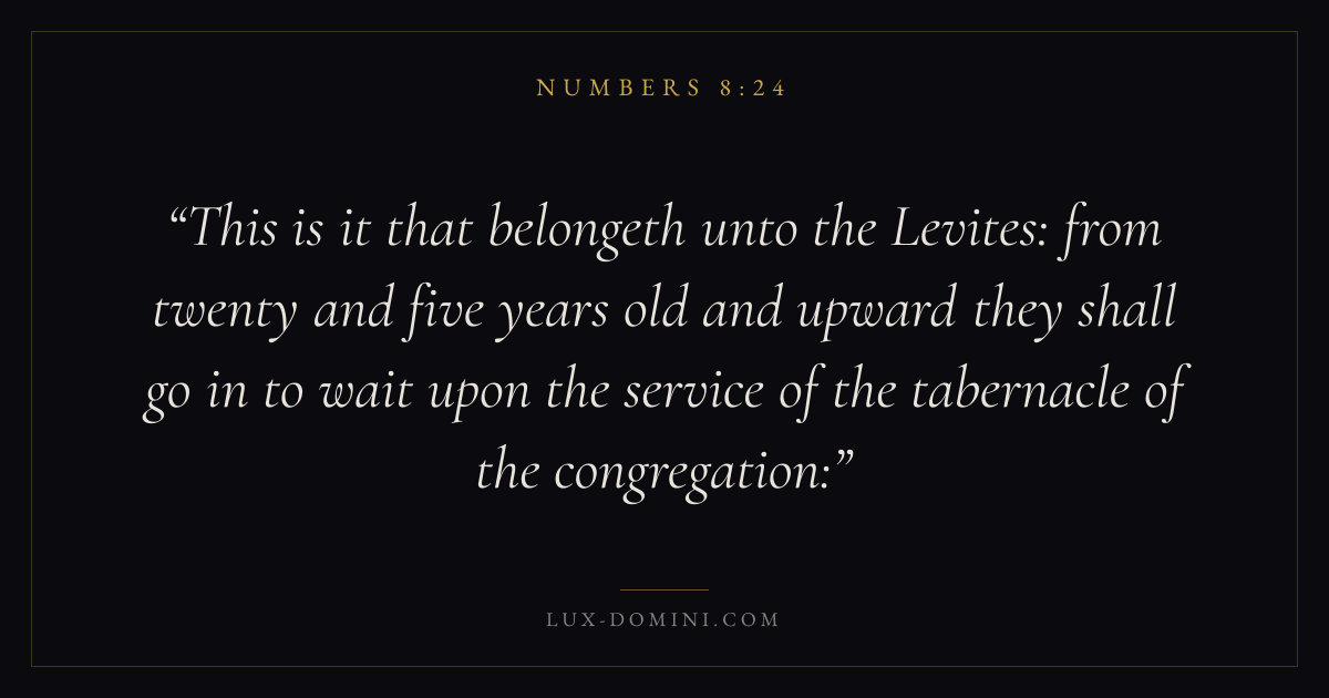 This is it that belongeth unto the Levites: from twenty and five years old and upward they shall go in to wait upon the service of the tabernacle of the congregation: